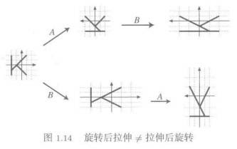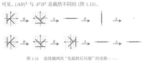 考虑A是一个旋转的坐标变换,而B则代表横向拉伸。那么先旋转后拉伸与先拉伸后旋转,结果当然不同。