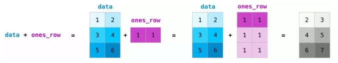 对于不同大小的矩阵,只有两个矩阵的维度同为1时(例如矩阵只有一列或一行),我们才能进行这些算术运算,在这种情况下,NumPy使用广播规则(broadcast)进行操作处理: