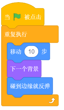 慢动作,不断点击外观模块中的【下一个造型】积木块。将看到小猫咪的样子不断在两个图片中来回切换,就像奔跑一样。