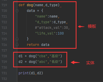 定义一个函数dog,将需要的参数写入字典data,返回data,就完成了模板