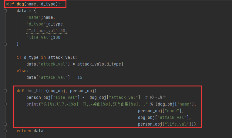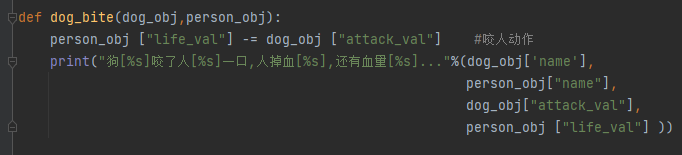 接下来就写游戏交互,交互就可以写成一个函数,dog_bite(狗咬人)