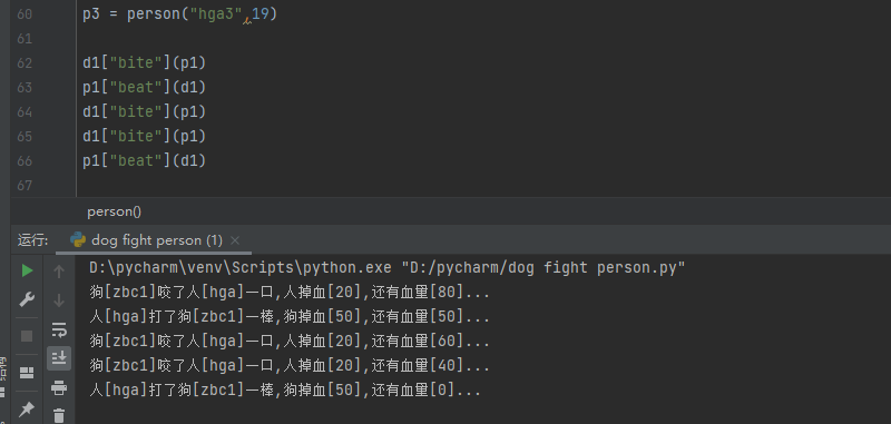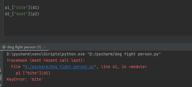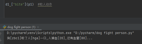 到现在这个代码还没有完全结束,dog_bite不是只属于dog的,person_beat也不是只属于person的,person可以使用dog_bite这个动作,dog也能使用person_beat这个动作;
