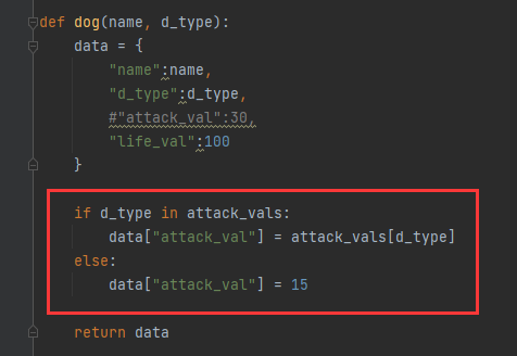 再在data字典下return上写一个if判断来自动区分攻击力