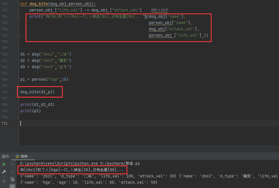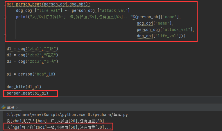 1:定义一个函数dog_bite有两个参数dog_obj和person_obj