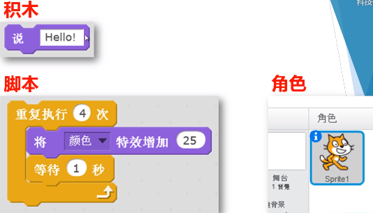 积木、脚本与角色是Scratch的主要组成。