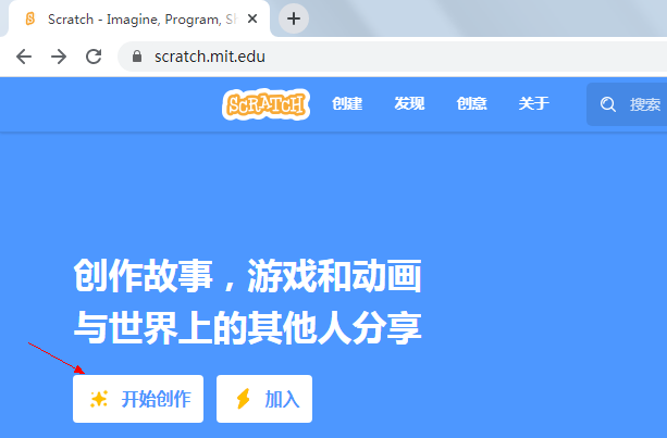 打开官网,点击“创作”,也可以直接点击:https://scratch.mit.edu/projects/editor/
