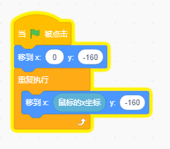 挡板的积木,首先移动到中心靠下的位置,重复执行为随鼠标的X坐标移动。