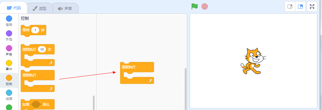 点击“控制”中选择“重复执行”,拖到“脚本”窗口