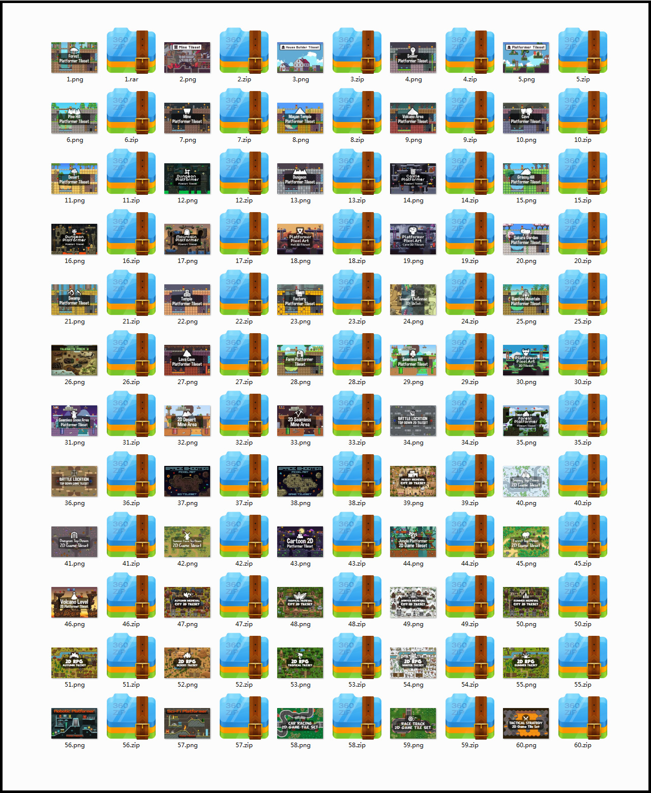 地图场景类素材包:60套横版地图场景,包含多种风格,适合闯关或者冒险类游戏。主要看你自己怎么策划利用。每一套地图都包含PNG图片格式的免扣拼贴元素和设计分层源文件,也就是说如果素材风格不符合你的要求,会点软件你也能自己修改UI颜色/外观等。还包括出现在地图上的一些UI元素,比如金币、宝箱、机关…等元素素材。