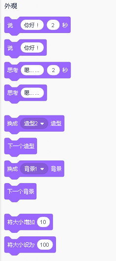 下面我们先来看一下,外观模块都有哪些积木组成呢?
