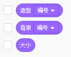 大小:这个跟我们之前设置的大小指令类似,但是这个是可以获取我们当前角色的大小;比如我们之前使用指令:将角色大小设定为90,如果我们使用这个大小指令就可以获取到当前角色的大小是90,在一些案例中通常可以用在判断语句里面