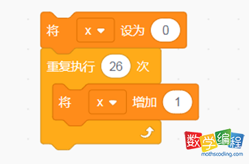 x=0的时候,y的值是从0-25逐一变化,就是有26次;