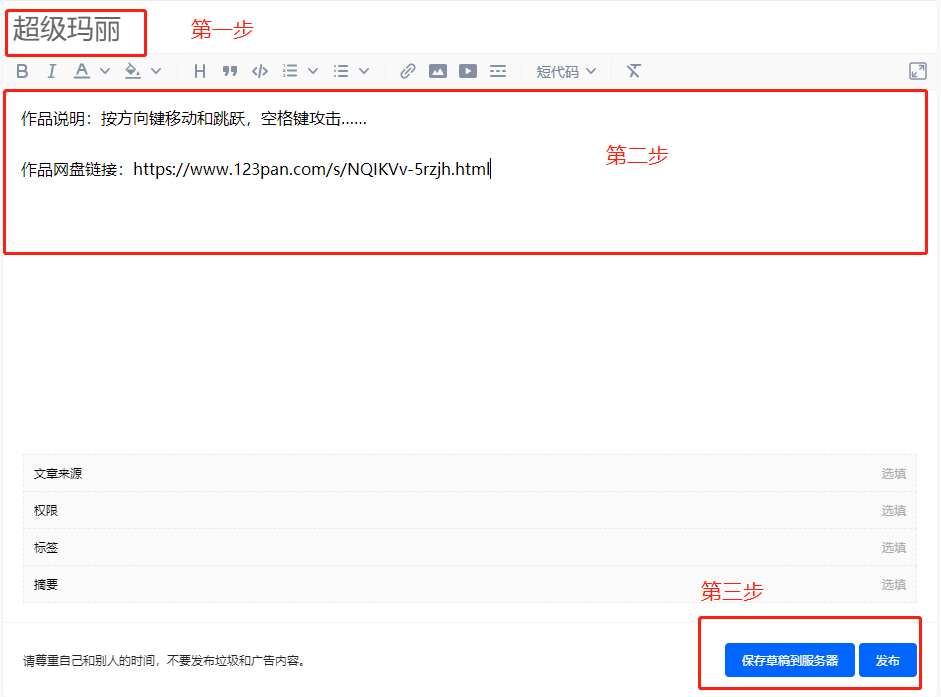 进入投稿模式之后,大家就可以编辑内容提交了。