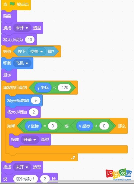 scratch小猫跳伞编程实现步骤: