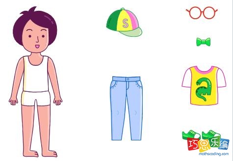 scratch角色装扮,是蓝桥杯2020年9月的STEMA考试中一道scratch编程问题,难度系数比较低,相当送分题了。主要考察的是学生对移动坐标的认识,以及外观层级的处理。运用的知识就是角色被点击积木、移到最前面或者后面;程序简单的实现,鼠标点击衣物角色,让角色穿上自己喜欢的装扮。