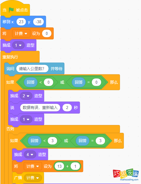 scratch智能计价器,是2023年5月7日,第十四届蓝桥杯省赛中级scratch编程题第4题,难度系数5颗星。主要考察的是运算模块积木的运用,以及克隆体的使用;主要的难点在于费用的显示上面。