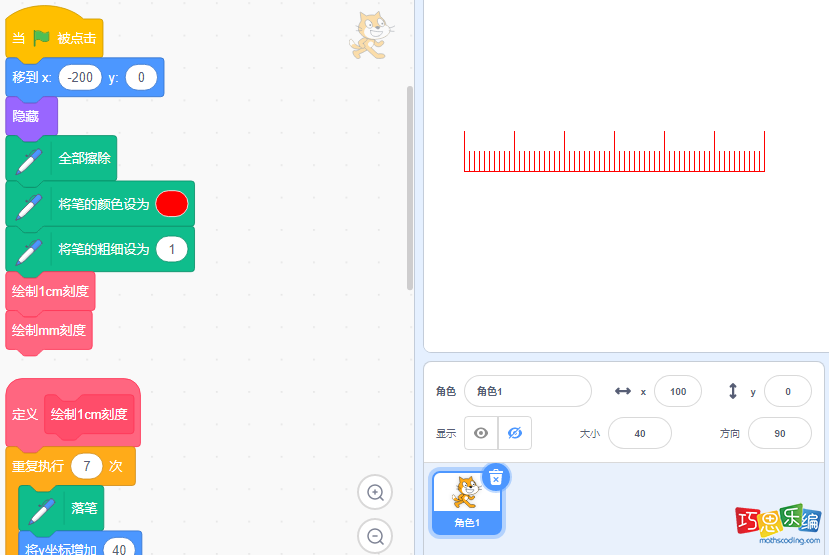scratch绘制直尺编程实现步骤: