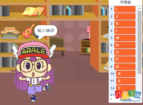 4)当在询问框中输入一个字母表中不存在的字母后,阿拉蕾说: “输入错误” ;