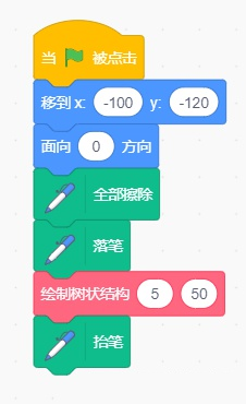 蓝桥国赛的一个程序,要求设计一棵树状结构。实际上,在scratch程序中,用递归算法画树是常见的一种实现方式。