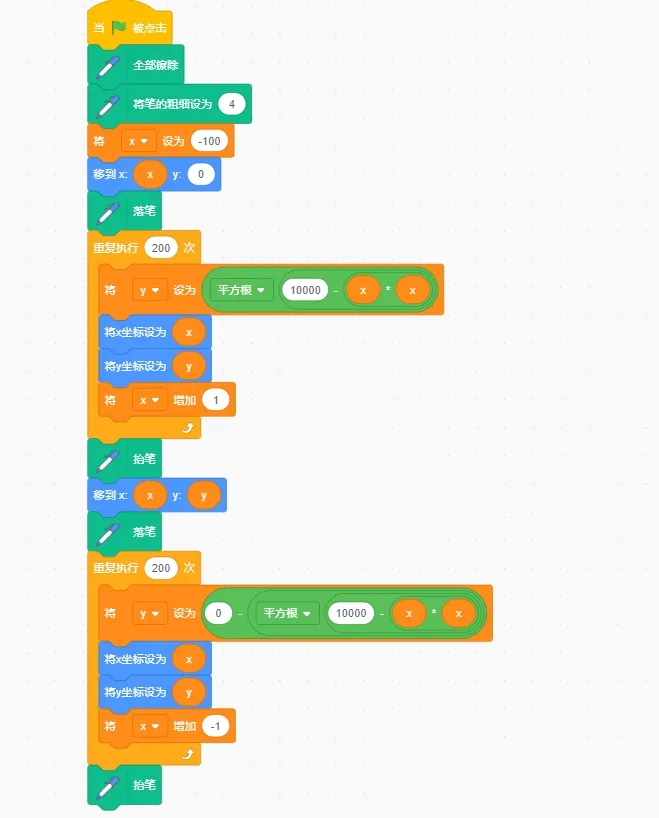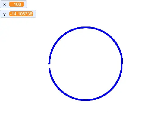 由于scratch的平方根计算精度问题,x和y并不会回归到原来初始位置,所以画出来的圆会有一个小缺口。