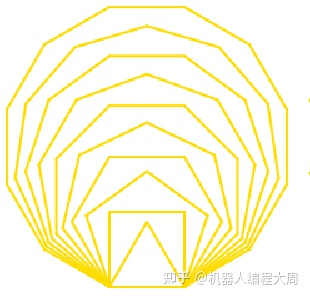 看出基本图形应该是没问题,正n变形的组合。规律呢?规律就是一个包着一个,并且变长应该是不变的。代码如下: