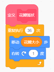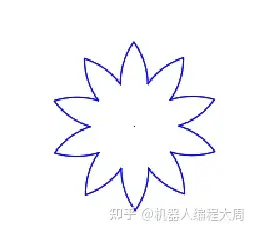 每一个花瓣是由两段弧形组成。弧所在圆的圆心虽然不容易计算,但还是可以通过数学计算求的,所以这道题的解法不见得唯一。我还是习惯从最容易理解的角度来讲。我们可以理解为,花瓣的每个弧就是每向前走一步就转一定的角度,这样就可以形成花瓣的弧状。代码如下: