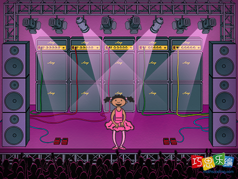 (4)播放声音的同时,角色Ballerina每隔 1秒切换一次造型, 切换4次造型,最后切换为ballerina-a。