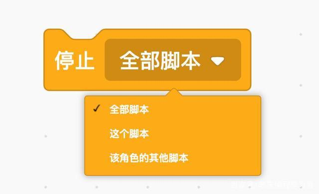 (3)停止(该角色的其他脚本):终止执行这个角色其他代码组的执行,而不影响当前代码组(本积木所在代码组)的执行。