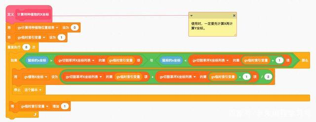 再想想,上面自定义积木“计算待植物的坐标”能够稍微改进一下,也能实现我们的计算目的呢?
