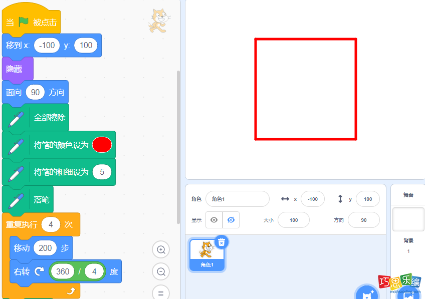 scratch绘制正方形编程实现步骤