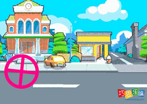 2)等待1秒,在舞台左侧画出如图所示的车轮图案;