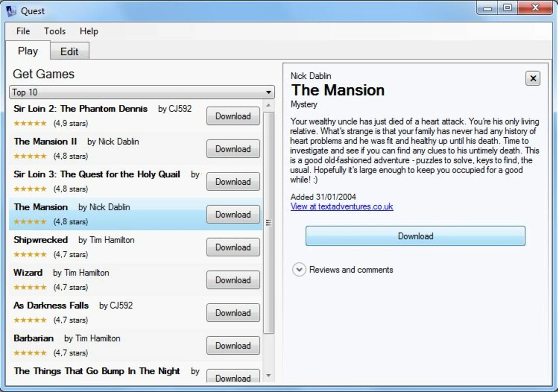 Quest是最简单的游戏创建平台之一,它将给游戏创作带来无限可能。如果你是文字冒险游戏迷,你能在此享受大量由其他用户所制作的高质量游戏。