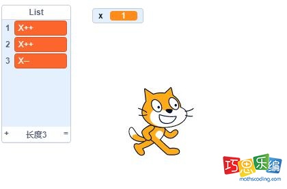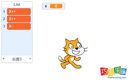 新建变量“X”,初始值为 0,经过列表中的操作后将最终的结果存入其中。